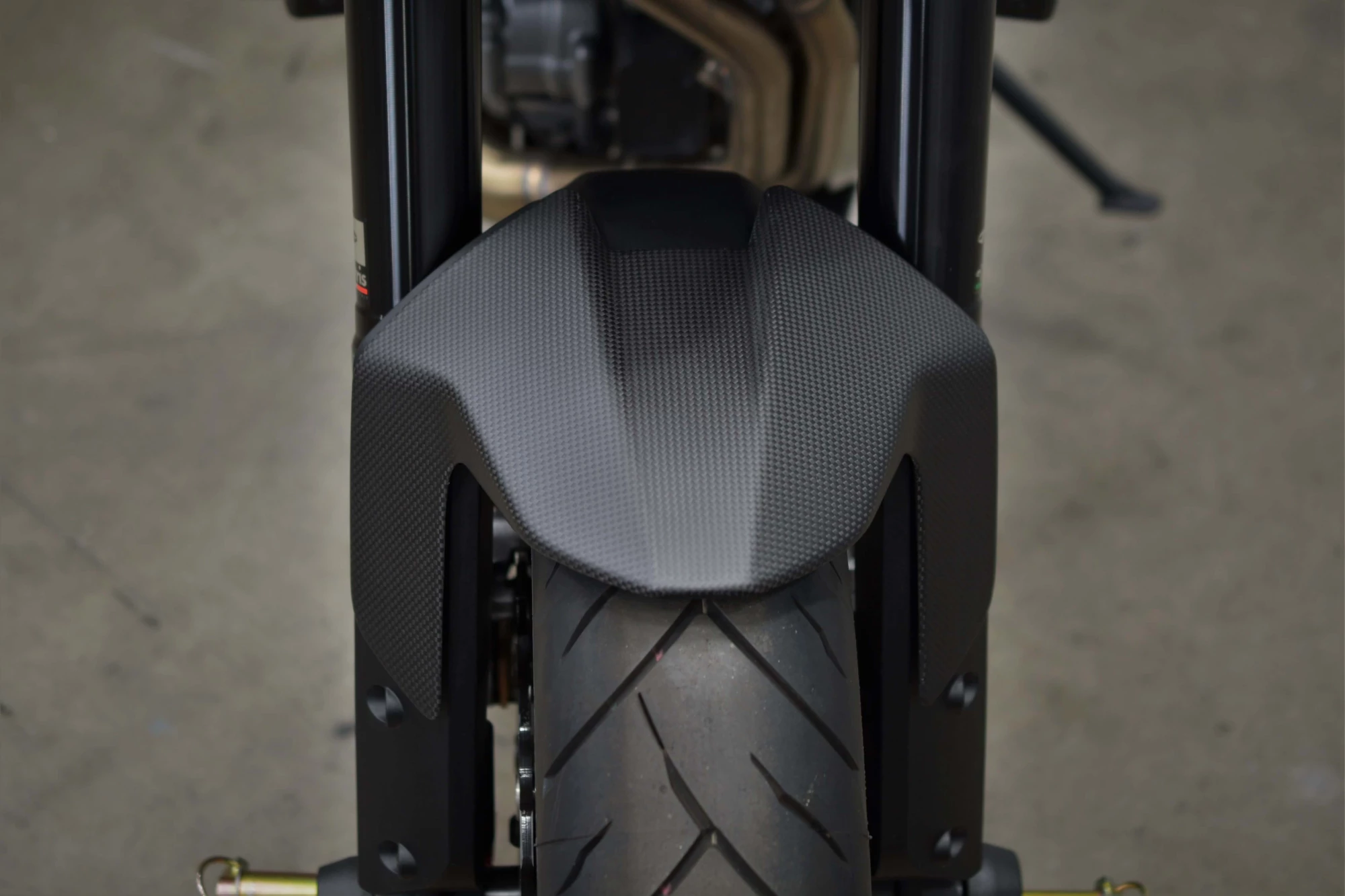 For this we removed the OEM wheels and added a set of DYMAG UP7X Forged Aluminum Front and Rear Wheels, at a massive weight savings per wheel, they greatly increase both handling and performance, while adding gorgeous GP look to the bike. The decrease in wheel weight is also beneficial as it helps to offset the slight increase of rotational mass that was added by going to oversized front rotors. We finished off the wheels with a pair of Dunlop's latest DOT Supersport tires, the Dunlop Sportmax Q4 120/70-17 up front and a Sportmax Q4 180/55-17. These are ultra sticky and damn near Dunlop's AMA Supersport race-spec tire, just for the street.